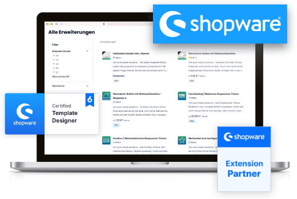 Als offizieller Shopware Extension Partner entwickeln wir regelmäßig Themes und Plugins, die deinen Online-Shop erweitern und optisch aufwerten.