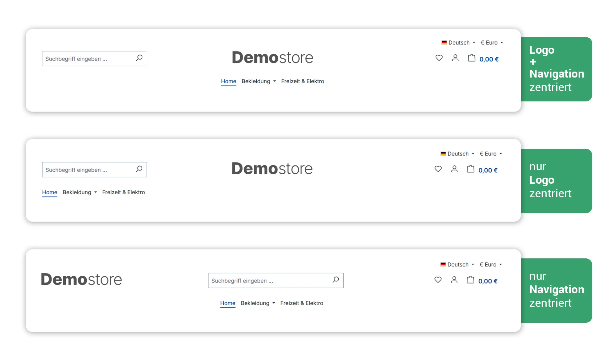- Bei mittig ausgerichtetem Logo wird die Suchfunktion automatisch nach links verschoben