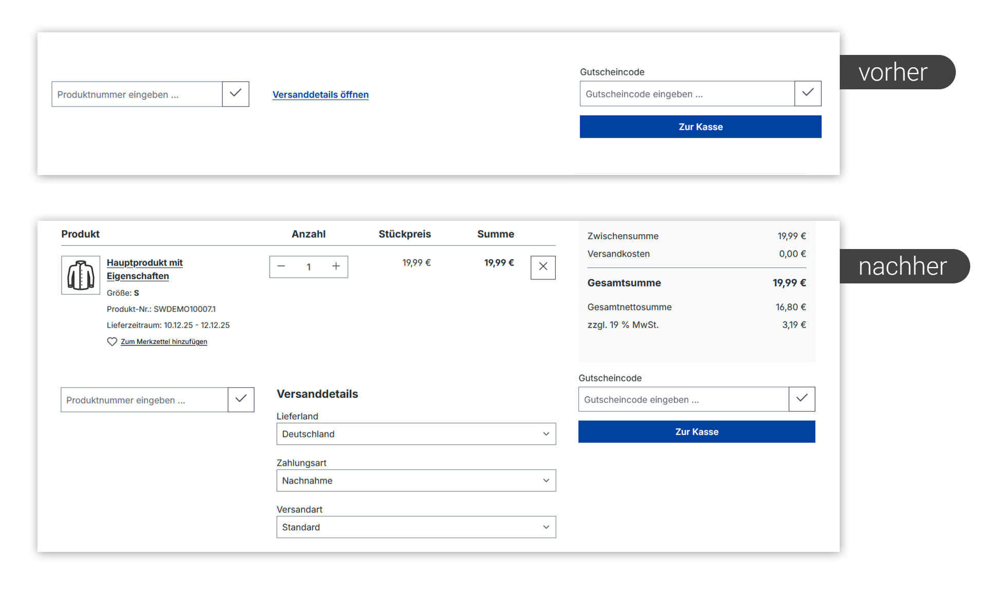 Das Plugin erhöht die Benutzerfreundlichkeit, sorgt für eine transparentere Darstellung der Checkout-Schritte und reduziert mögliche Abbruchpunkte im Kaufprozess. Dank der simplen Integration funktioniert das Plugin sofort nach der Installation – ganz ohne weitere Konfigurationen.