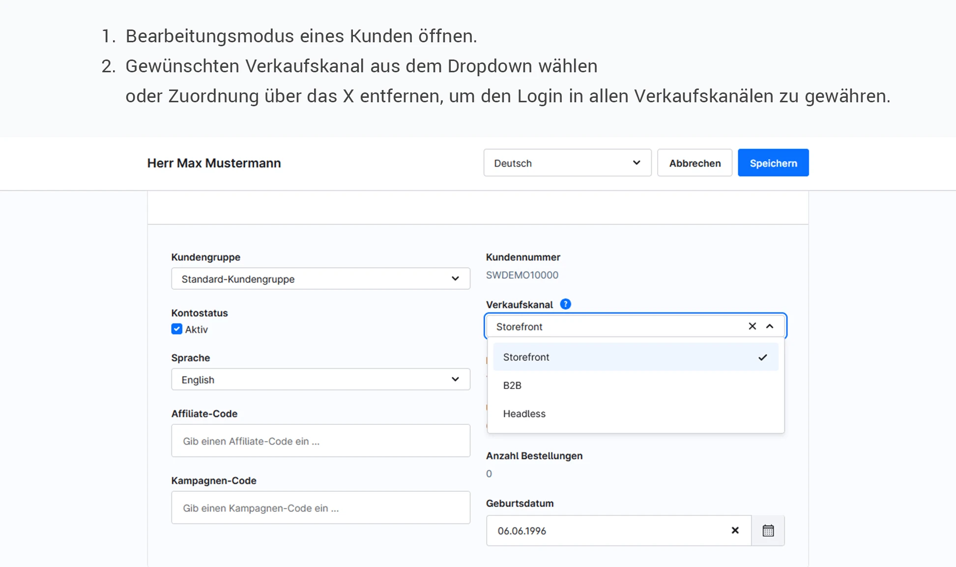 Shopware 6 Plugin: Zugewiesenen Verkaufskanal von Kunden ändern