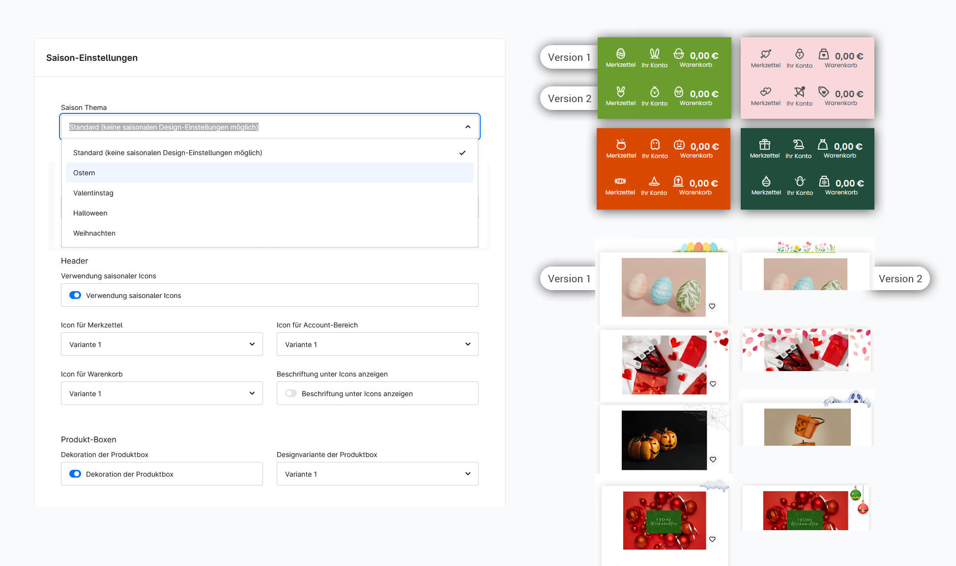 - Saisonale Styles: Ostern, Weihnachten, Halloween & mehr